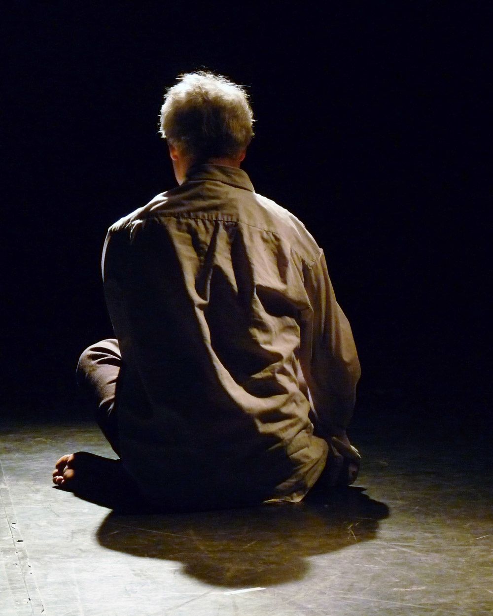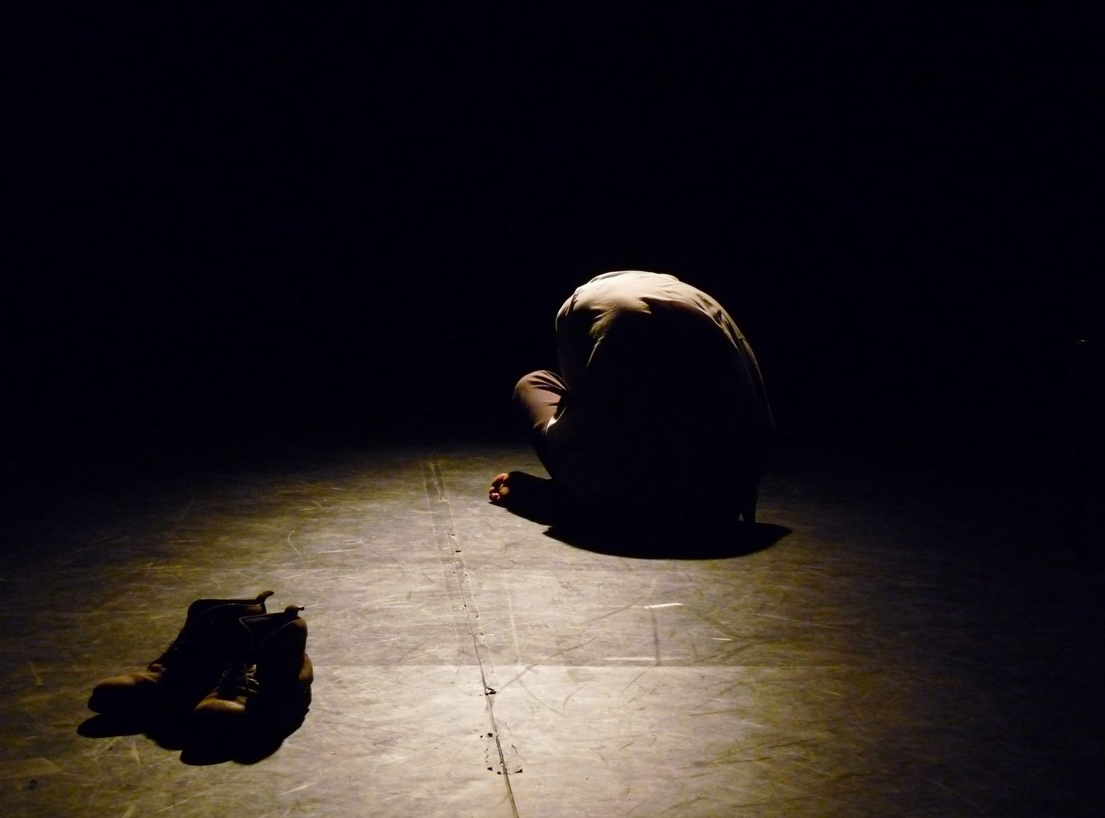 Un homme démuni dans tous les sens du terme, face à la perte, à l’absence définitive de l’autre. Dans un espace et un temps devenus incertains, comme déréalisés, un corps se cogne au réel de sa solitude, à son impuissance devant la vie et la mort, au sentiment de culpabilité que cela engendre et que lui renvoie immanquablement la société.